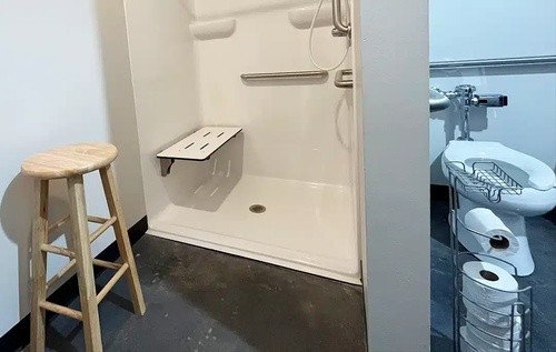 - Private, wheelchair-accessible showers/bathrooms